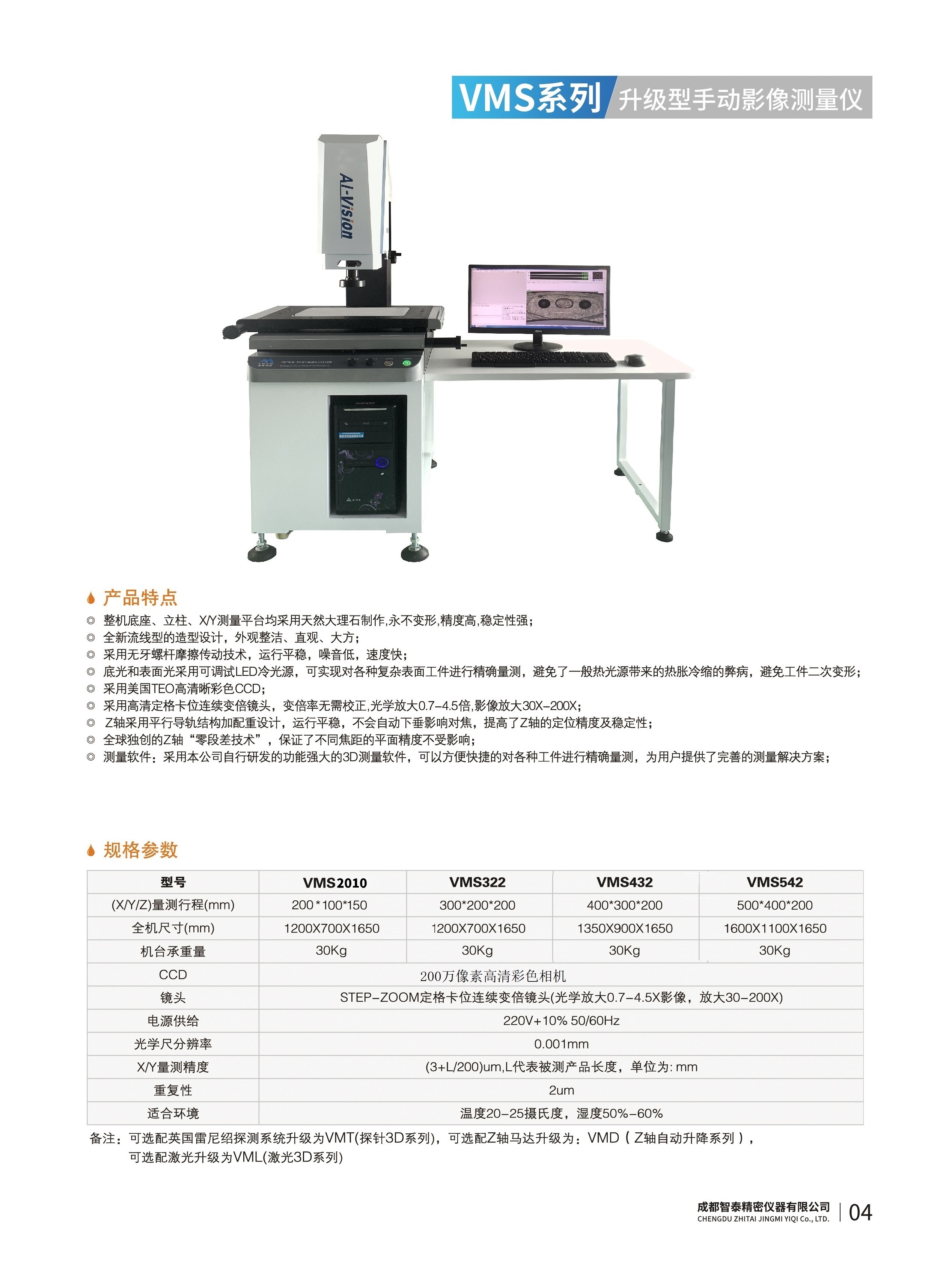 成都智泰精密儀器有限公司專注于精密測量儀器,人工智能,智能制造領域,專業(yè)從事智能視覺自動化檢測解決方案的貿易型企業(yè)。公司成立于2011年,位于天府之國成都,現(xiàn)有行業(yè)精英十余人,辦公倉儲面積200余平米。 公司主要產品為精密光學影像測量儀,精密輪廓形狀測量儀,精密機器人定位系統(tǒng),精密智能視覺尺寸檢測儀器,精密表面缺陷智能檢測設備,工業(yè)工程特種機器人。 公司憑借過硬的技術實力和產品方案,率先進入智能視覺自動化檢測領域,推廣以精密智能視覺自動化檢測為基礎的機器人自動化應用,公司不斷整合上下游的資源,擁有巨大的全產業(yè)鏈優(yōu)勢??蛻羧后w覆蓋了我國精密制造業(yè)的多數(shù)領域,包括航空、航天、軍工、汽車、新能源、光伏、食品,精密電子、精密機械、模具、PCB、LCD、五金、塑膠、醫(yī)療、教育、計量及科研院所等行業(yè)。 公司創(chuàng)新的產品能滿足生產與制造行業(yè)客戶的要求,訓練有素的工程師能及時提供多種技術服務,如解...